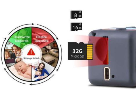 A kamerába helyezhető egy 32 gb-os microSD kártya, amelyre több órányi felvétel tárolható. (Nem tartozéka) Akkumulátora egy töltéssel (2-3 óra) akár 100 percnyi folyamatos akciót képes felvenni. A termék kiváló megoldás lehet a biztonsági felügyelet vagy a személyes felügyelet szempontjából, illetve a kis mérete miatt diszkréten elhelyezhető bármilyen helyiségben.